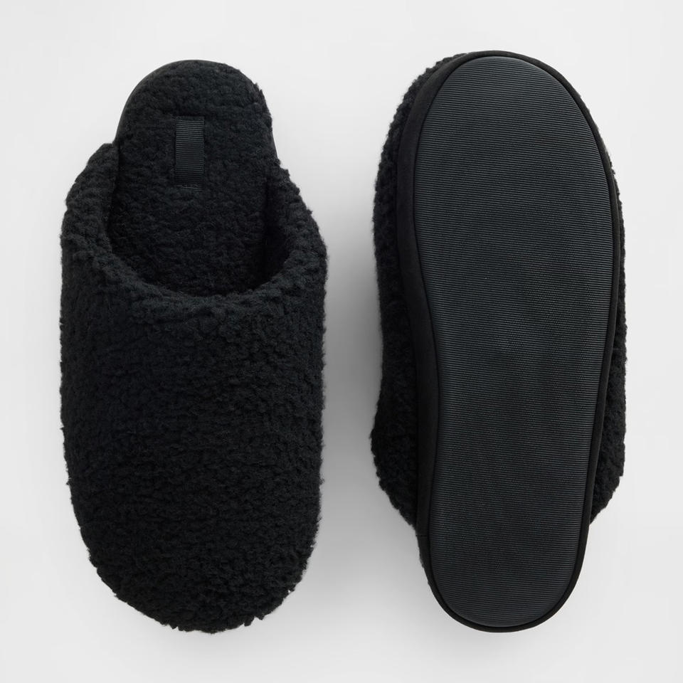 Pantoufles unisexes douillettes à enfiler avec dessus en sherpa confortable et semelle intérieure chaude, mules d'intérieur pour hommes et femmes