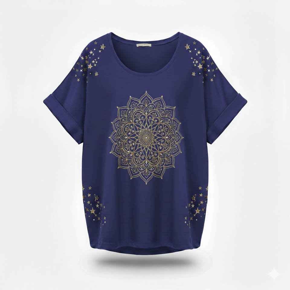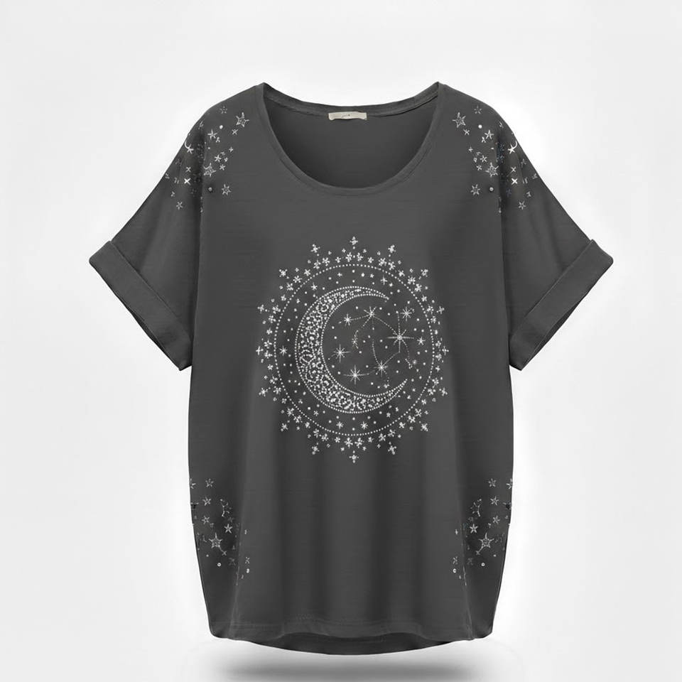 Chemise unisexe à manches courtes en toile polyester/coton respirante, imprimée numériquement avec des paillettes, pour un usage quotidien décontracté