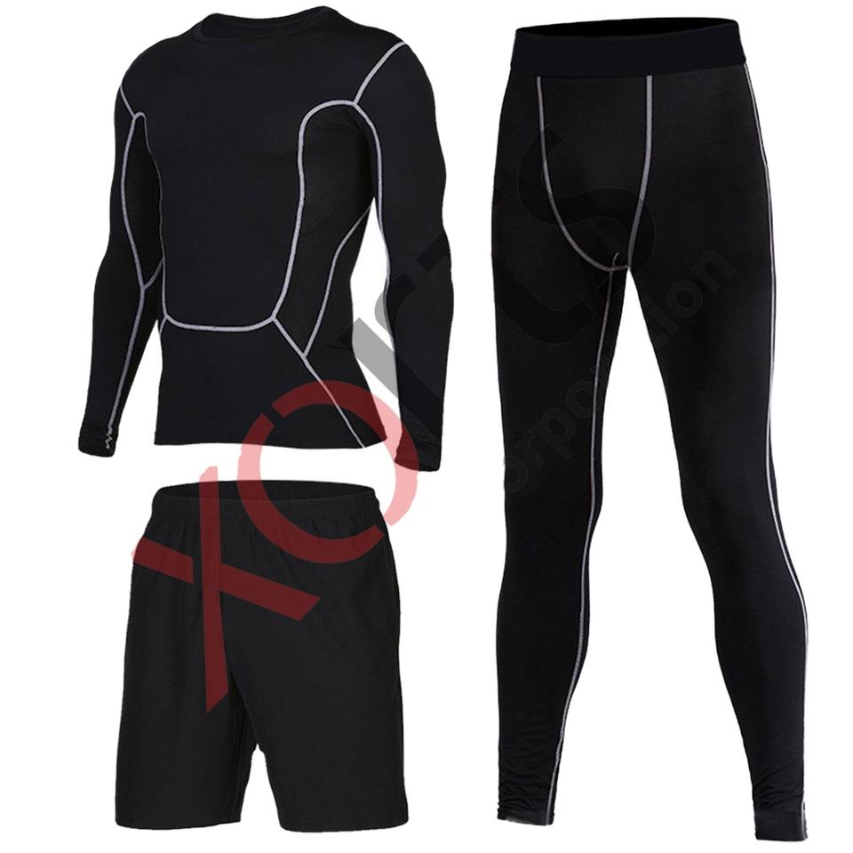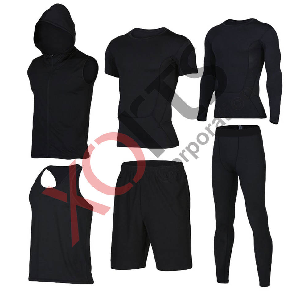 Ensemble de vêtements de sport unisexe 6 pièces, vêtements de compression pour la course à pied, ensemble de vêtements de fitness, noir, spandex/polyester, coupe ajustée, taille élastique