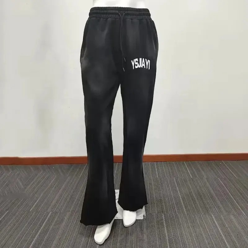 Pantalon de survêtement unisexe de haute qualité délavé à l'acide Baggy Joggers 2025 Pantalon cargo évasé taille haute à ourlet brut respirant d'été