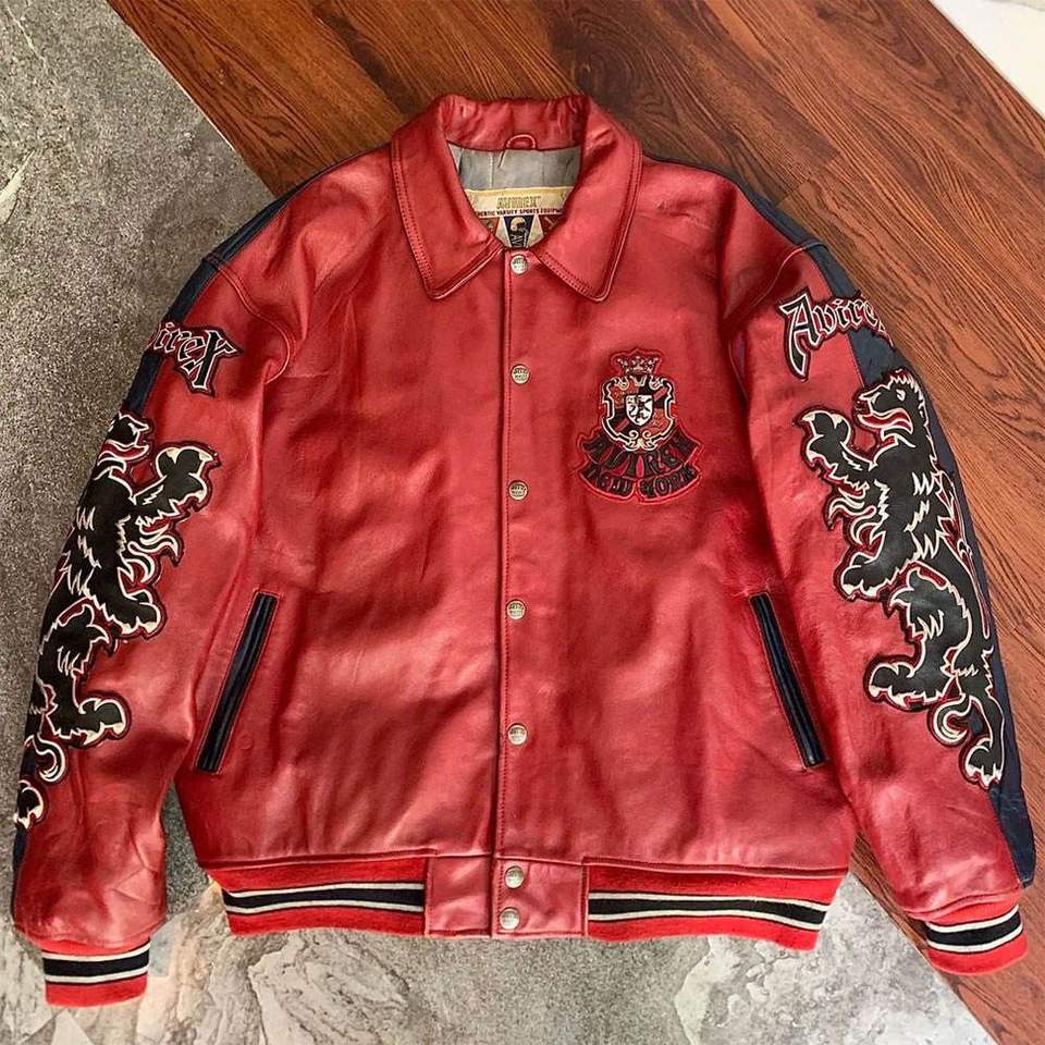 Veste universitaire unisexe en cuir véritable de mouton de haute qualité, style décontracté d'hiver, rouge et noir, col rond, fermeture éclair, en laine et cuir