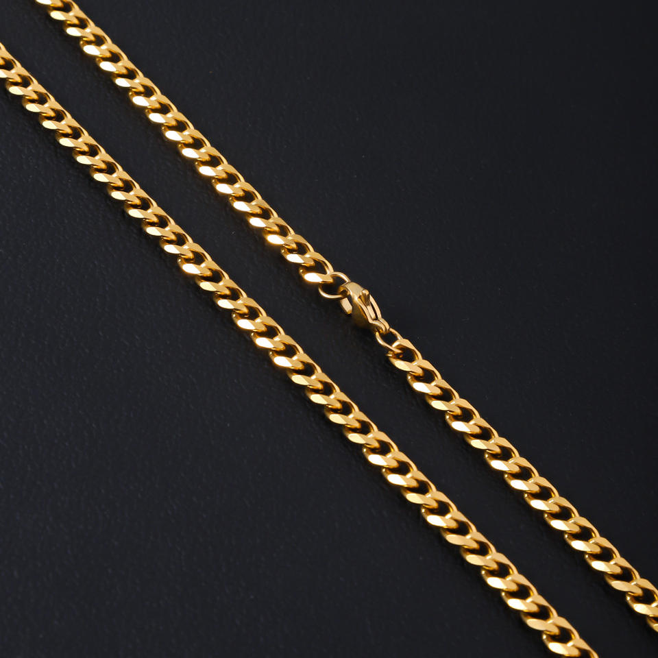 Unisex Hip Hop Chunky Cuban Chain Necklace Gold Plated Stainless Steel Cuban Link Chain Necklace