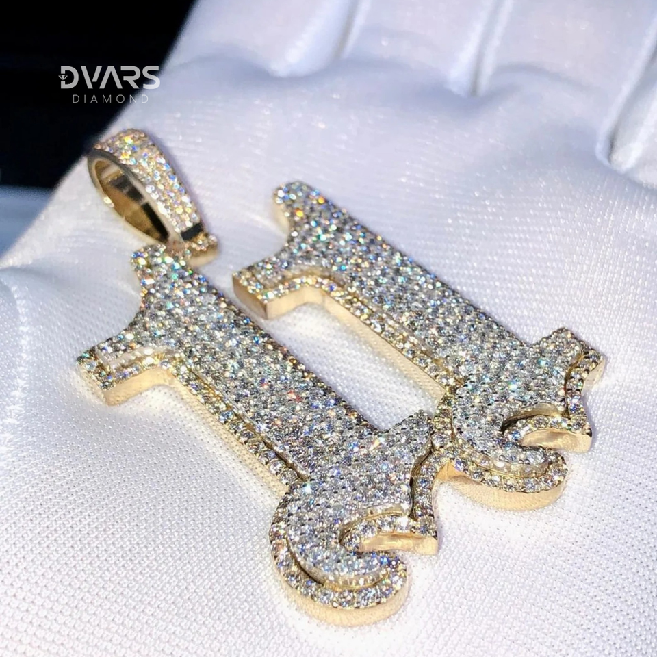 Pendentif classique unisexe en argent sterling 925 plaqué or avec charme numéro glacé, cadeau d'anniversaire, diamant moissanite VVS1, fabrication sur mesure