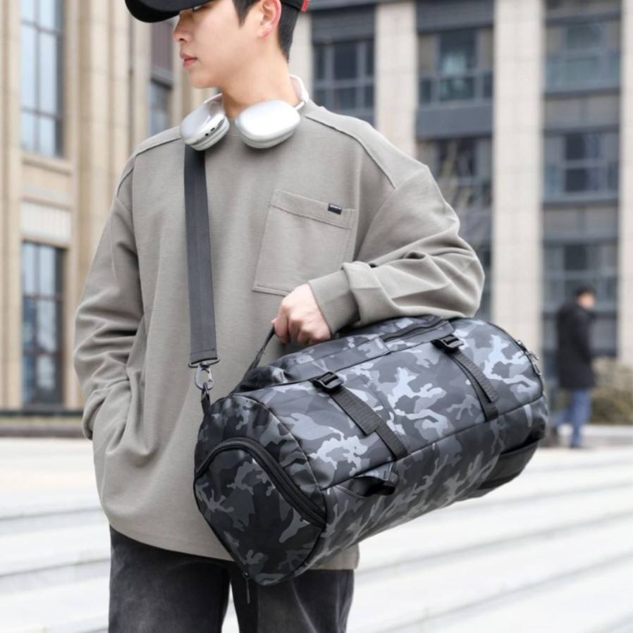 Sac de sport et de voyage unisexe grande capacité multifonctionnel avec compartiment à chaussures séparé (sec/humide) en polyester pour le sport et les loisirs