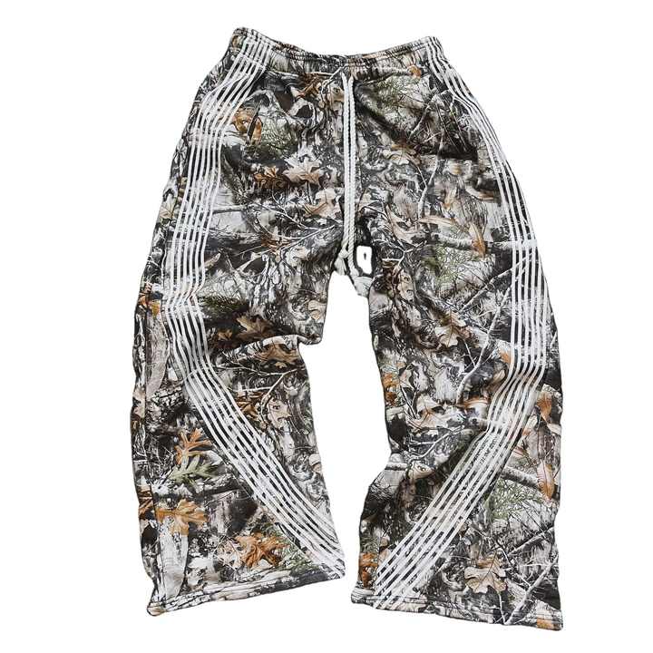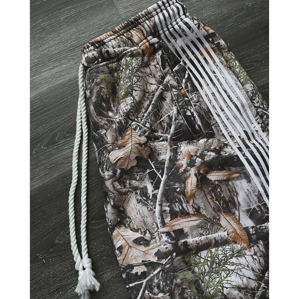 Pantalon de survêtement unisexe en coton épais, respirant et écologique, coupe mi-déchirée, avec cordon de serrage, jambe large évasée, motif camouflage arboricole