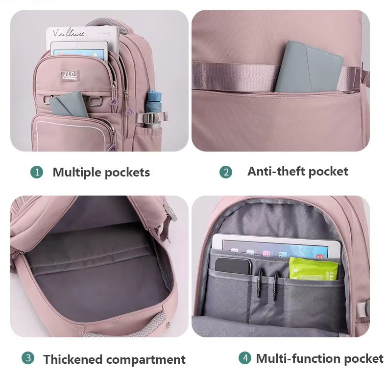 Sac à dos de loisirs unisexe portable multi-poches Protection de la colonne vertébrale Nouveau cartable pratique fermeture éclair étanche mode garçons filles