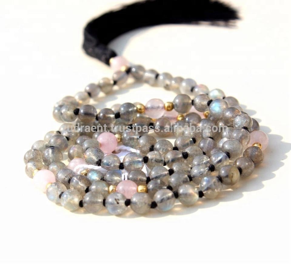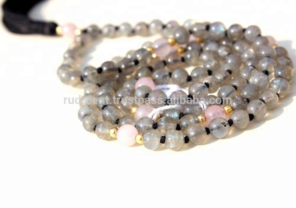 Collier de perles Mala unisexe de style bohème 108 chapelet en Labradorite naturelle pour le bouddhisme religieux pour les cadeaux et les fêtes