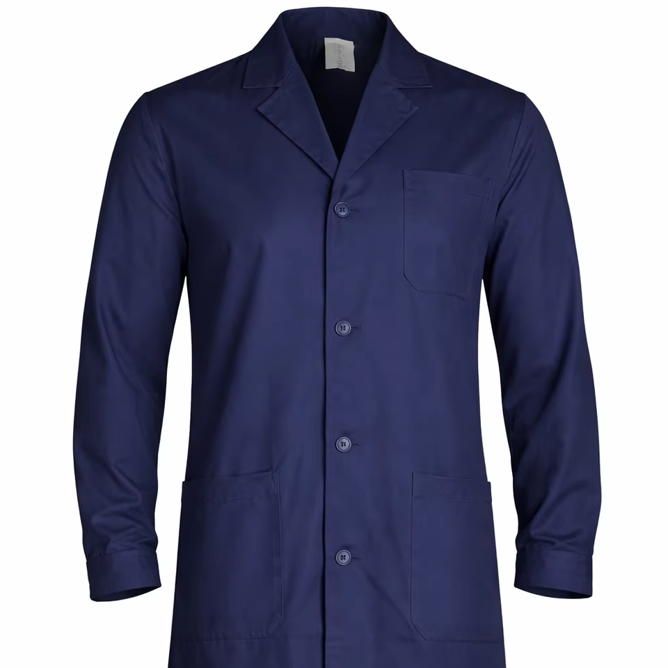 Unisex Navy Blue Lab Coat, Professional Full-Length Medical Workwear with Durable Fabric Design with Secure Front Button Closure