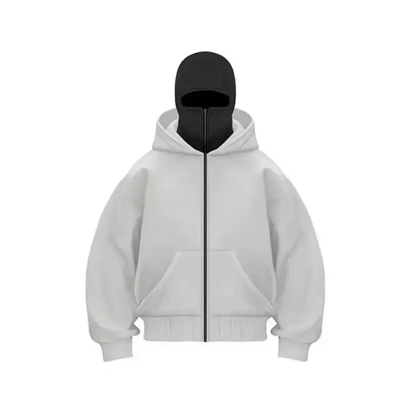 Unisex Ninja Hoodie 400gsm Cotton Fleece Face Mask Pullover Streetwear Outdoor Hoodies with 3D Blank Face Designed for Men
