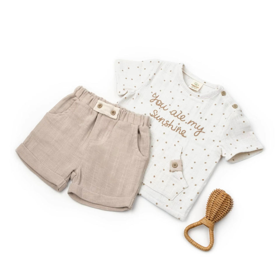 Ensemble de t-shirts courts unisexes en mousseline biologique pour bébé, vison, écru, confortable, en maille, tenue d'été à pois, ODM pour enfants