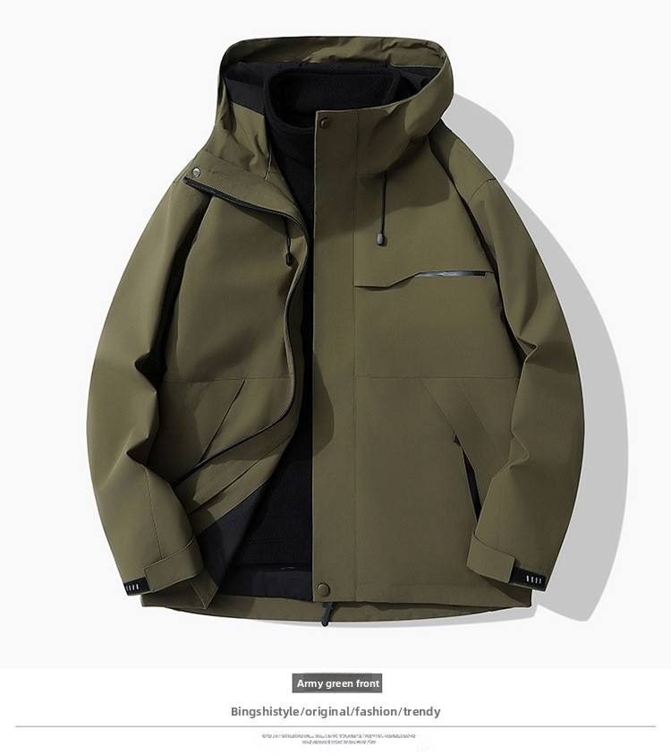 Veste de travail d'hiver imperméable unisexe à capuche trois-en-un avec logo imprimé et doublure en polaire pour la montagne