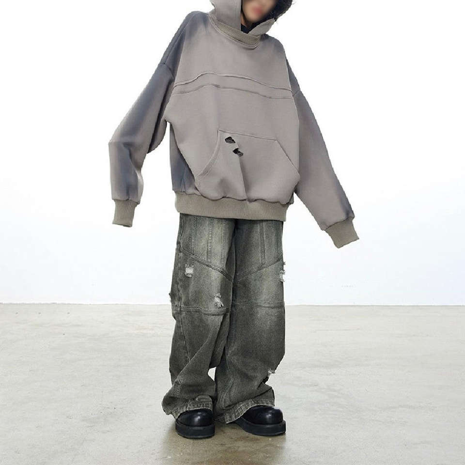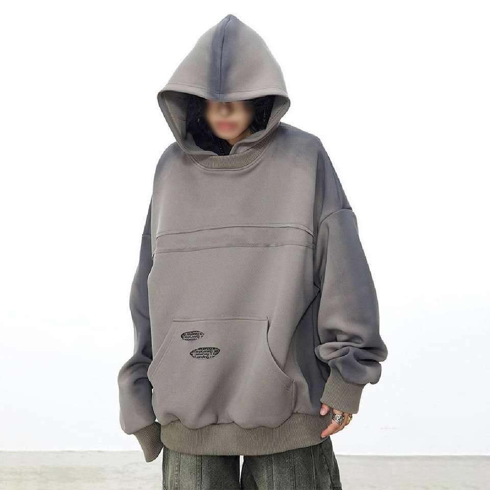 Sweat à capuche unisexe gris surdimensionné respirant en tricot motif uni délavé pour la saison hivernale