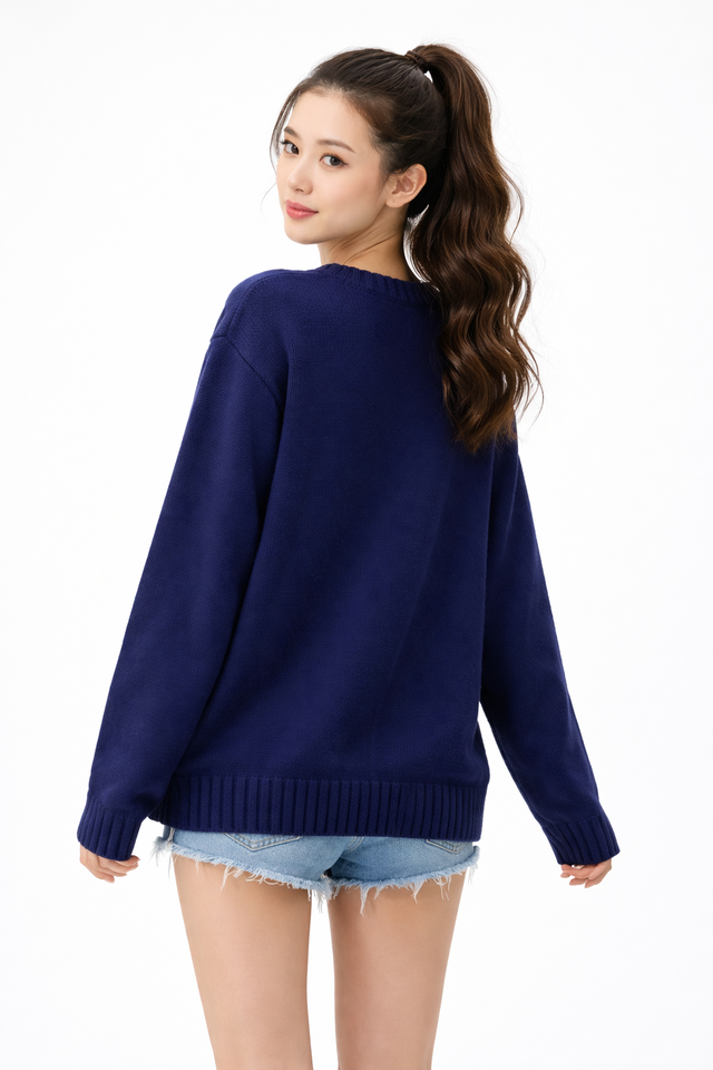Pull en tricot unisexe surdimensionné – Pull jacquard personnalisé avec drapeau/logo – Fabricant OEM de tricots d'hiver à col rond
