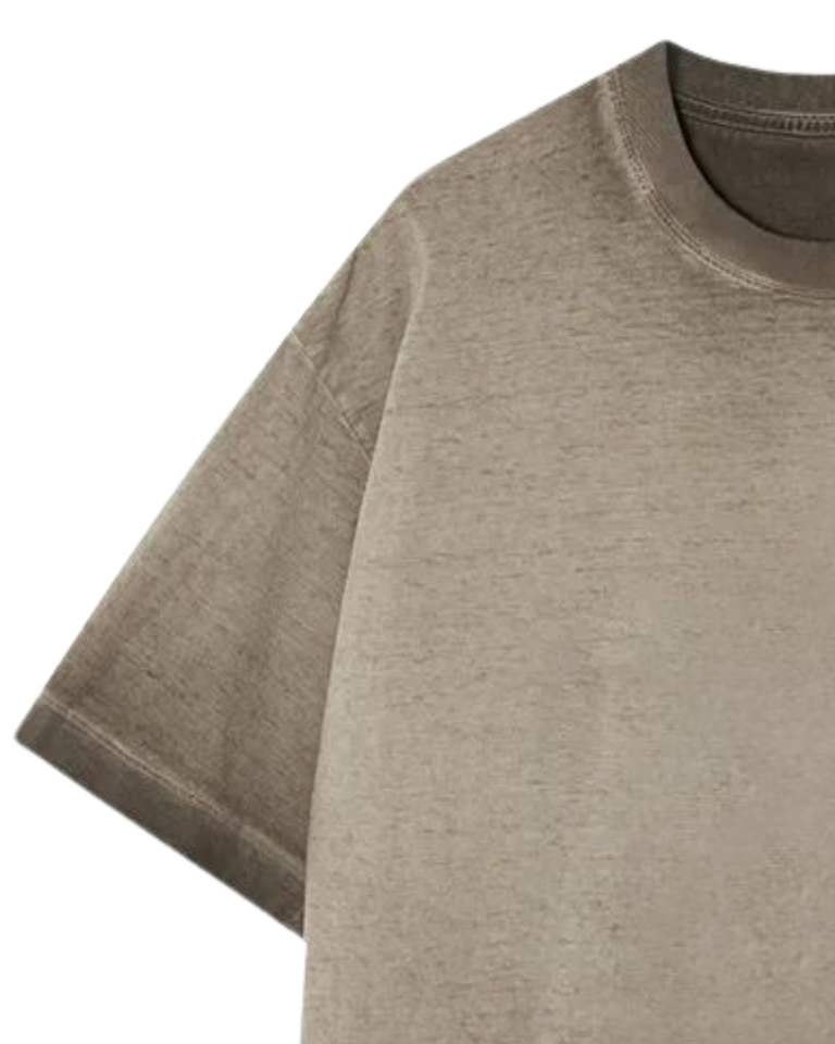 T-shirt unisexe en coton beige délavé surdimensionné, style vintage, délavé à l'acide, épaules tombantes, streetwear décontracté, haut unisexe, vêtements d'été