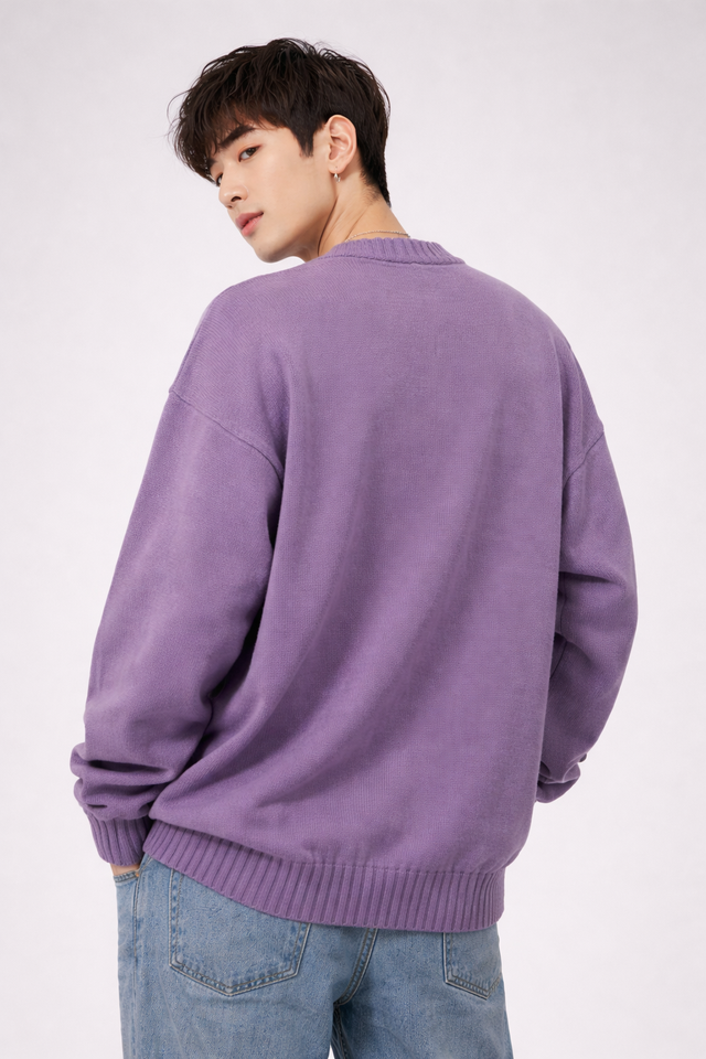 Crew Neck Knitted Sweater Ribbed Hem Wholesale OEM/ODM
