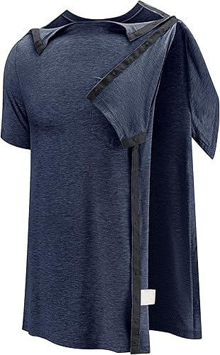Chemise de chirurgie post-épaule unisexe Chemise ouverte d'accès au port de chimio pour la récupération de la chirurgie de l'épaule