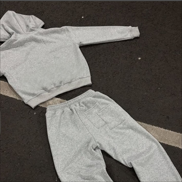 Ensemble de survêtement unisexe de qualité supérieure, taille plus, gris uni, été, à capuche, deux pièces, décontracté, coupe régulière, jogging, délavage acide