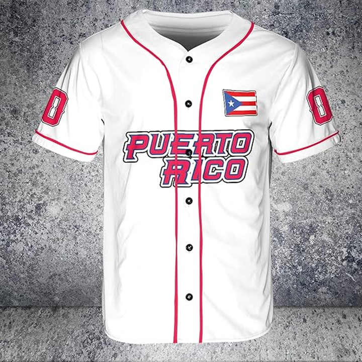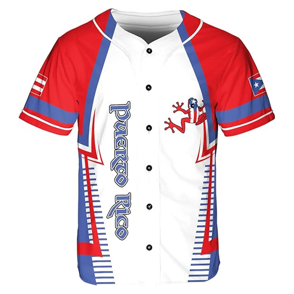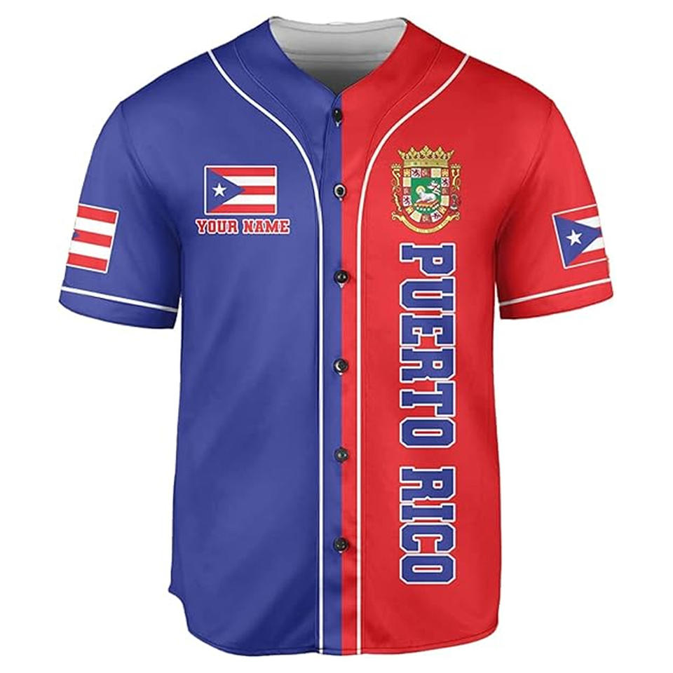 Maillot de baseball unisexe Porto Rico AOP Nom et numéro personnalisés Vêtements de sport Tailles XS-5XL pour adultes