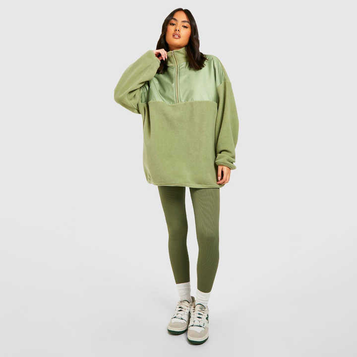Nom du produit:Sweat à capuche oversize en polaire teddy à col montant