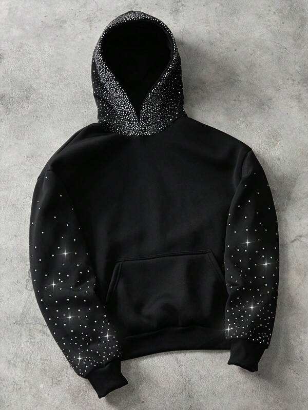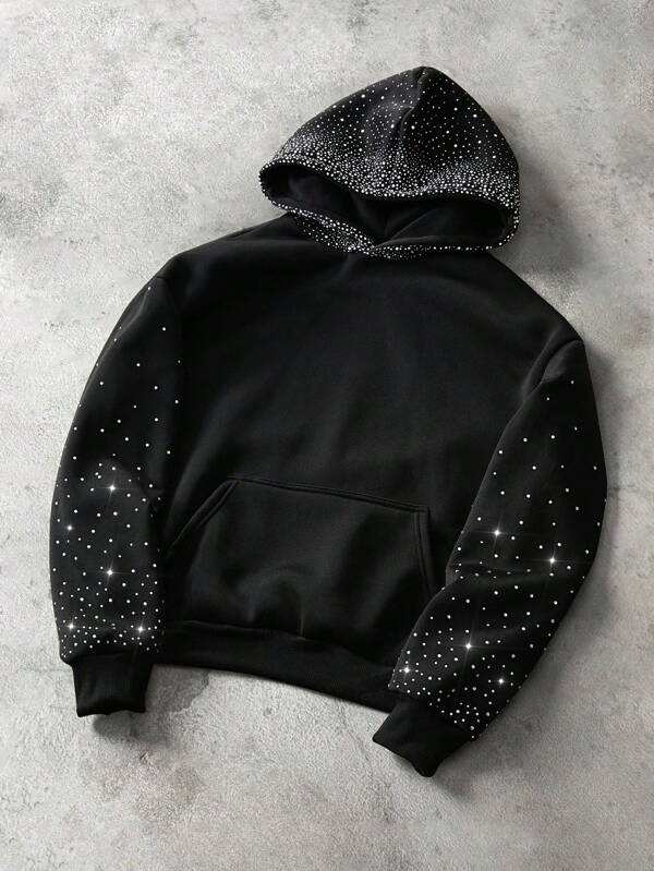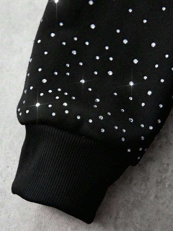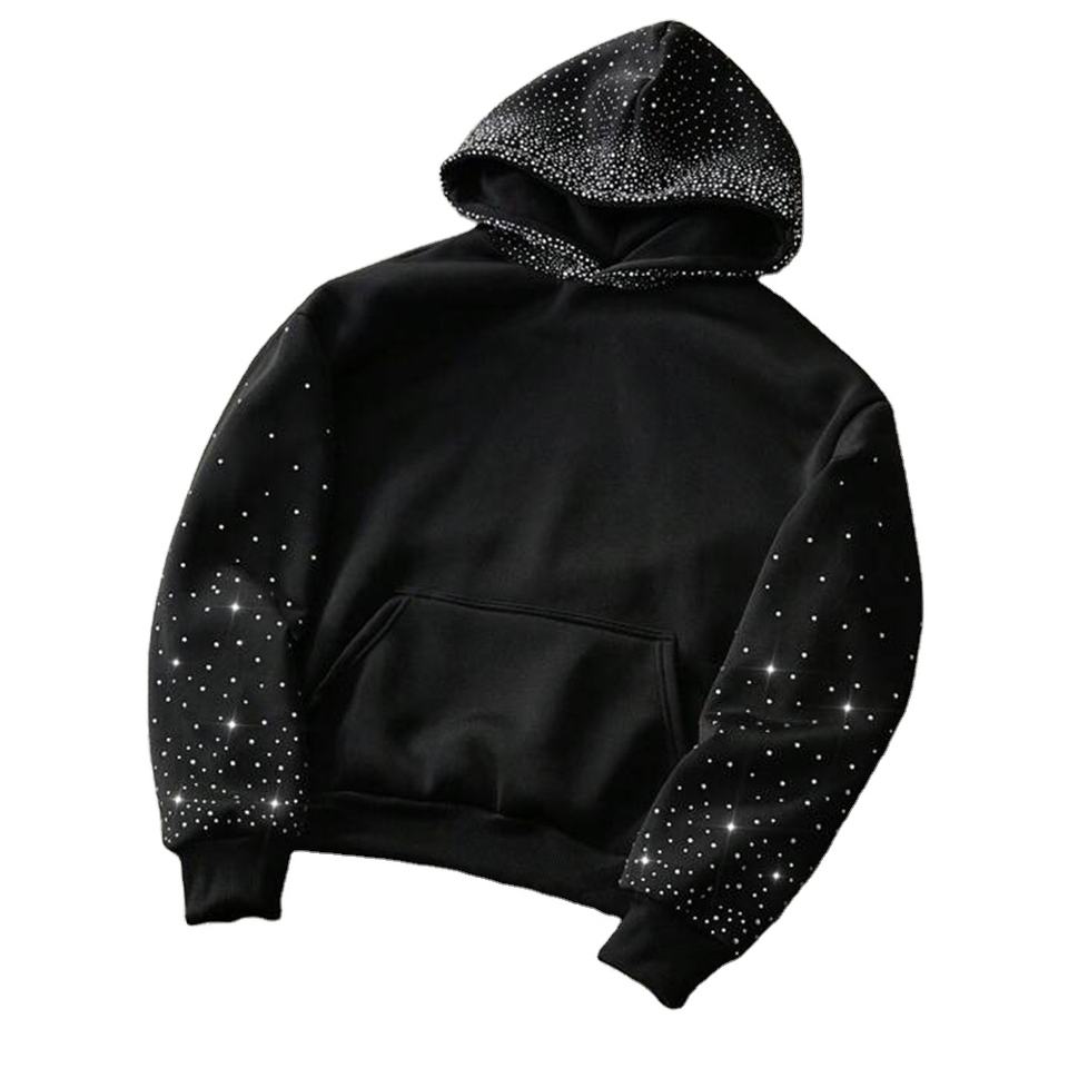 Sweat-shirt d'hiver unisexe à capuche avec strass, capuche et manches scintillantes, surdimensionné, polaire, en molleton, clouté de diamants