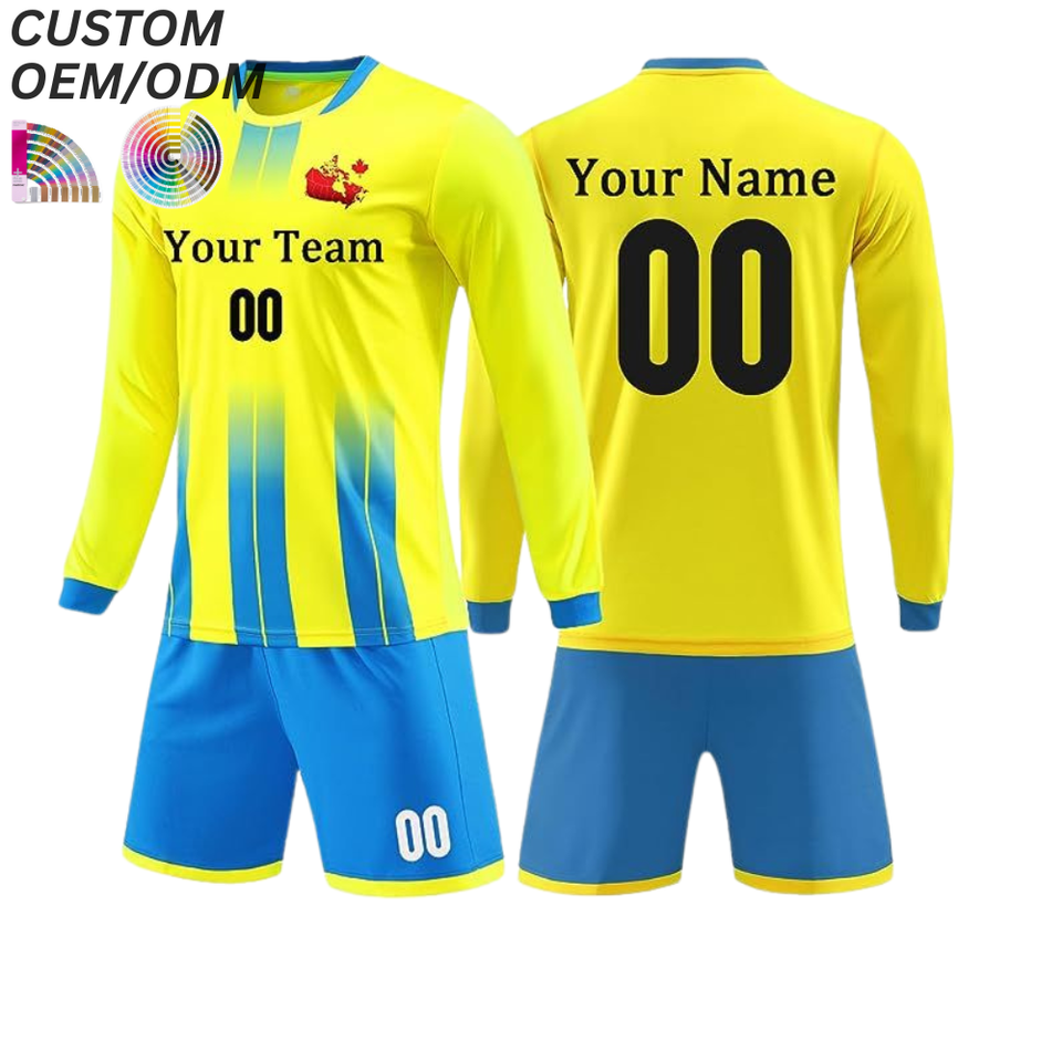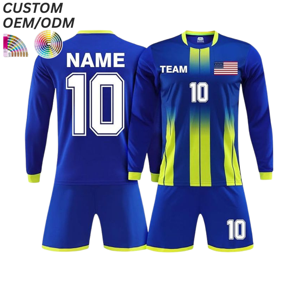 Ensemble d'entraînement de football unisexe à séchage rapide 100 % polyester, maillot uni imprimé sur le devant, uniforme, support OEM ODM, vente en gros de football