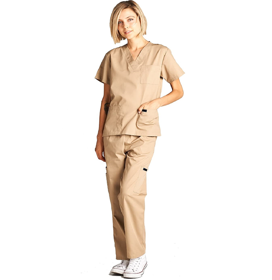 Ensemble de gommage d'allaitement 2 pièces unisexe doux, haut à col en V, pantalon avec poche cargo, imprimé court, uniformes médicaux d'hôpital OEM pour hommes