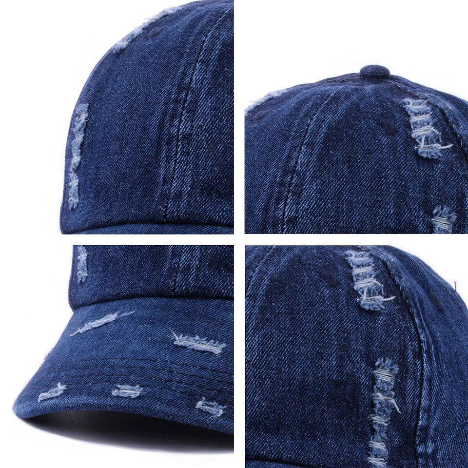 Casquette de baseball unisexe en denim délavé uni, casquettes déchirées pour hommes et femmes, casquettes de sport ajustables en vente