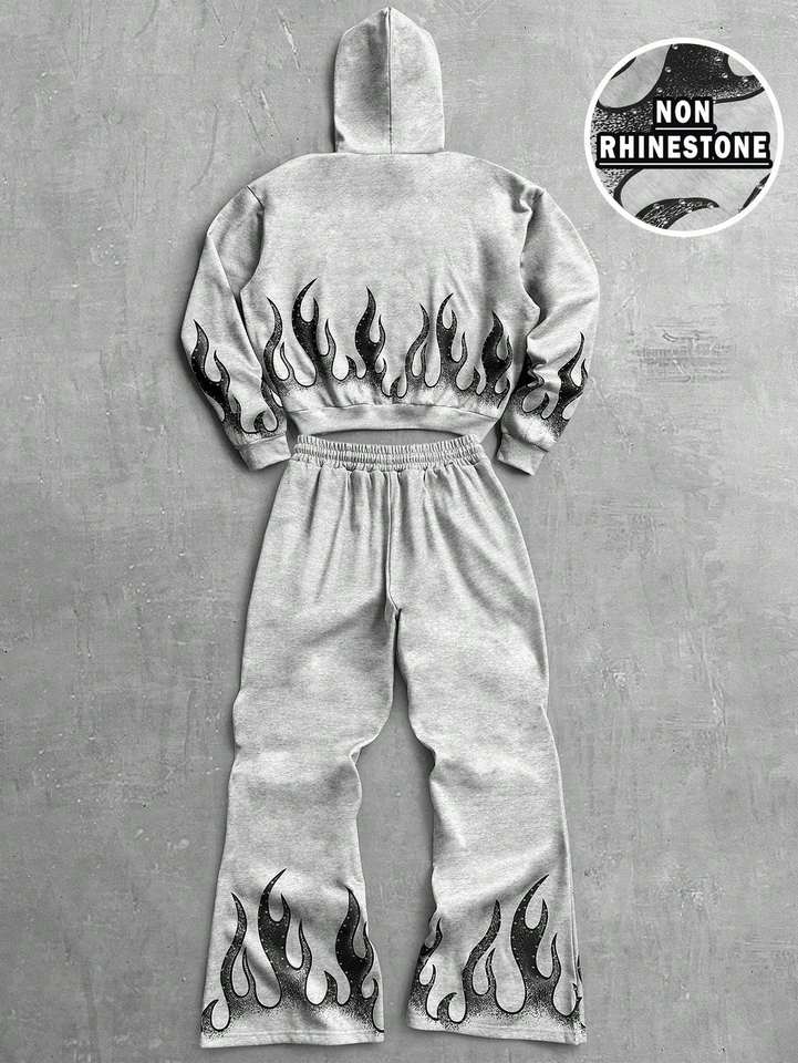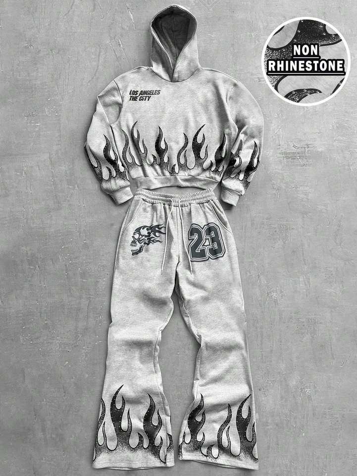 Ensemble sweat-shirt et pantalon de survêtement unisexe streetwear grande taille avec appliqué, vêtements d'automne et d'hiver pour inspirés
