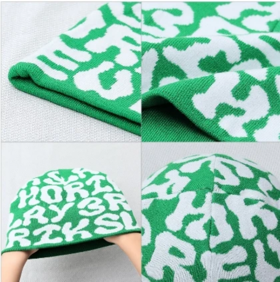 Unisex Stylish Jacquard Logo Knitted Hat Beanie Good Quality Outdoor Sports Winter Cuffless Cap Custom Logo Common Fabric