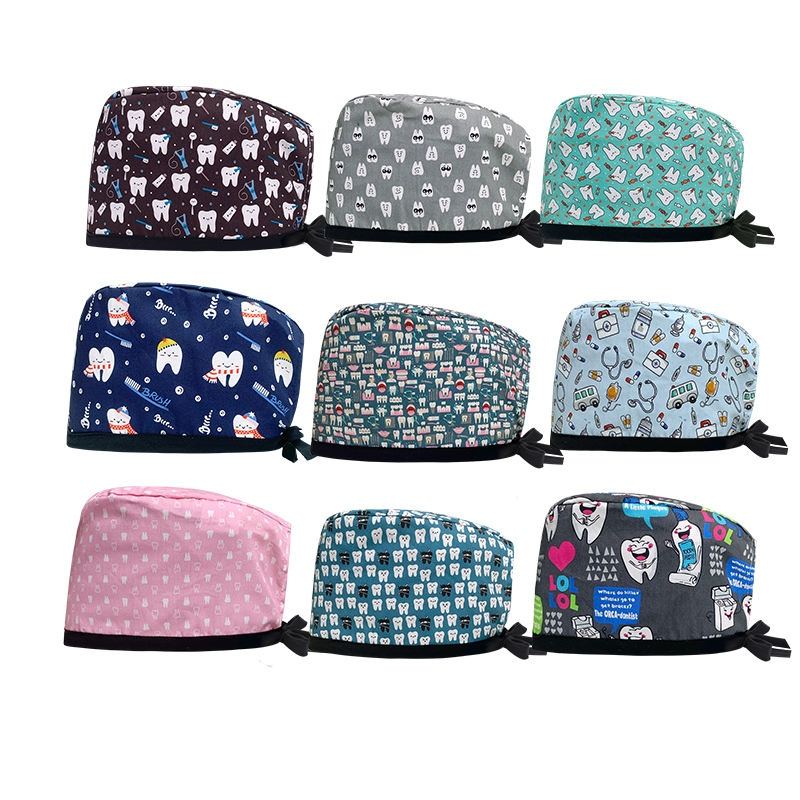 Bonnet de gommage chirurgical unisexe avec tissu imprimé et dos élastique pour usage médical dans les hôpitaux et les laboratoires