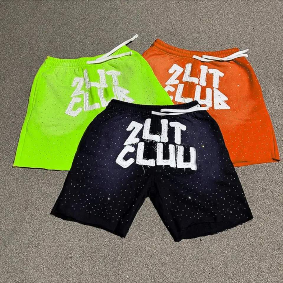 Short de survêtement unisexe délavé au soleil avec broderie en strass, style streetwear, imprimé