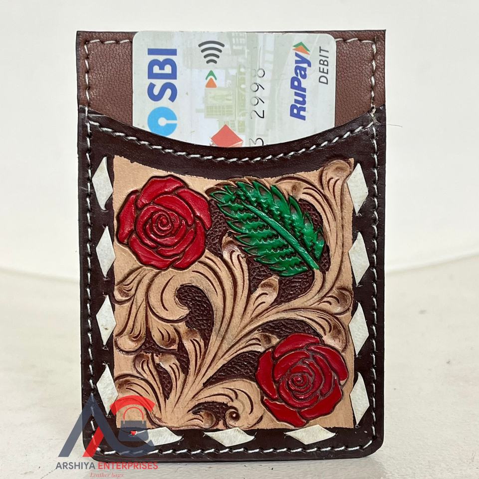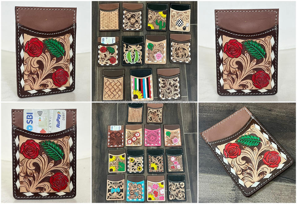 Type:Hand Tooled Cow Leather Credit Card Holder Wallet