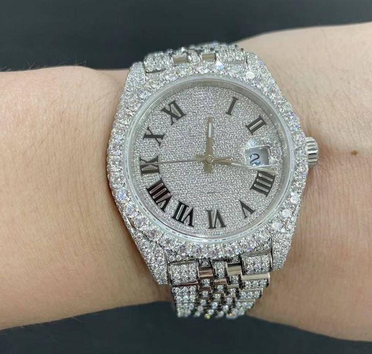 Unisex VVS Moissanite Bust White Diamond Luxury Quartz Watch Automatic Movement Crystal Dial Window Hip Hop Jewelry for Him Her