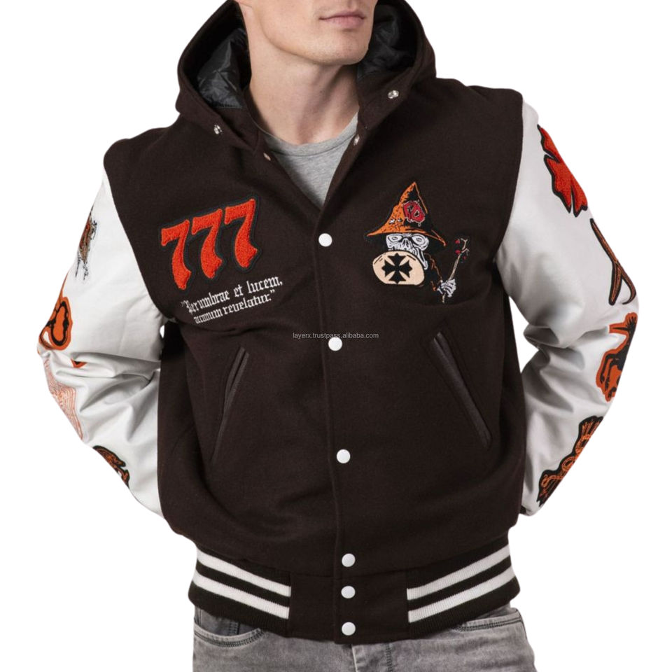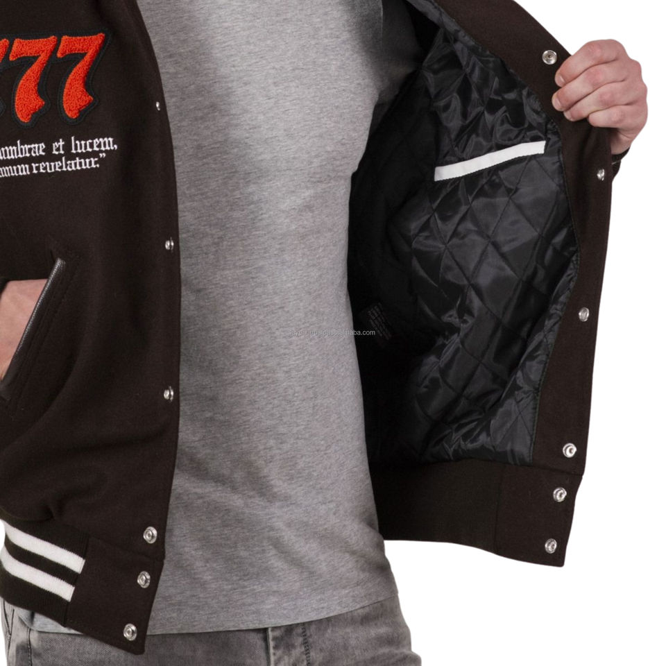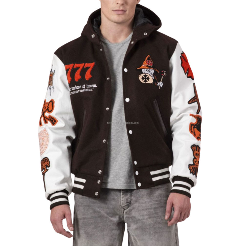 Veste universitaire unisexe en laine avec manches en cuir, fermeture éclair sur le devant, patchwork, style bomber de baseball, doublure matelassée, pour équipe