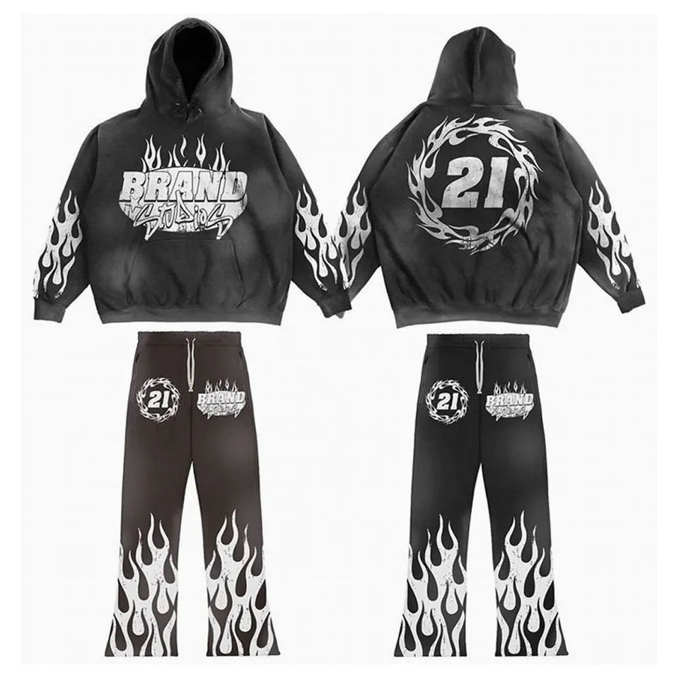 Unisex Vintage Acid Wash Sun Faded Heavyweight Cotton Fleece Men's Sweatsuits Tracksuits Fully Screen Printed Fashionable Winter