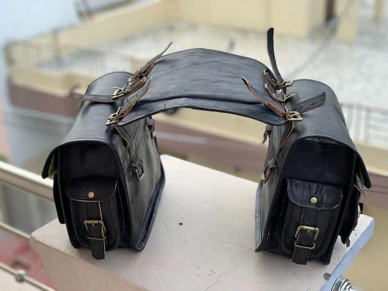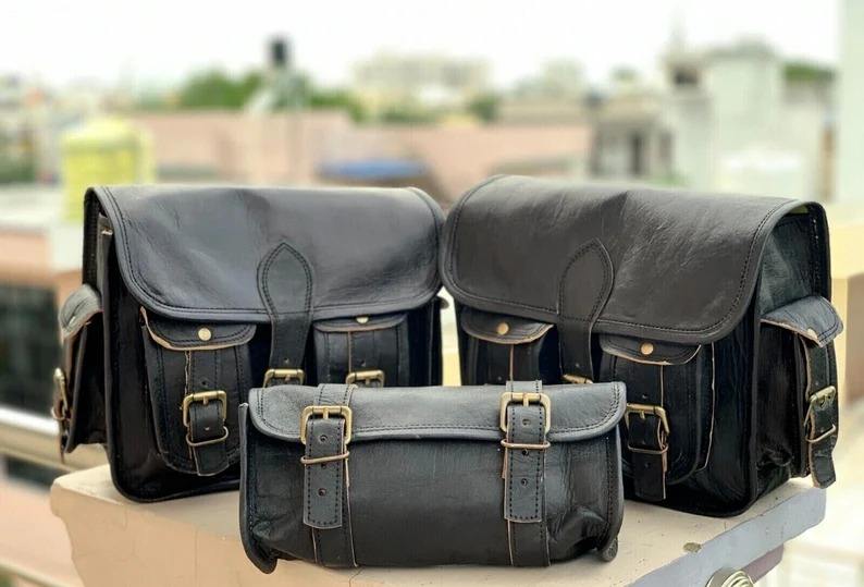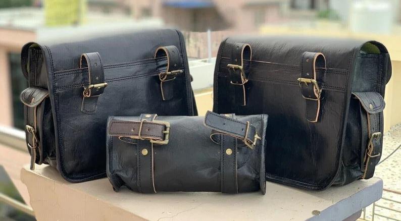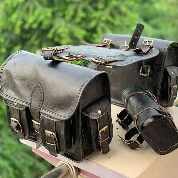 Unisex Vintage Custom Pattern Large Leather Motorcycle Saddle Bags Universal Fit Side Pouch Panniers Sport Duffle Travel Bags