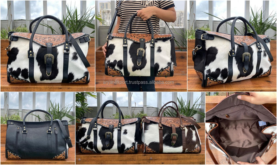 Product name:Tooled Cowhide Leather Weekender Duffel Bags