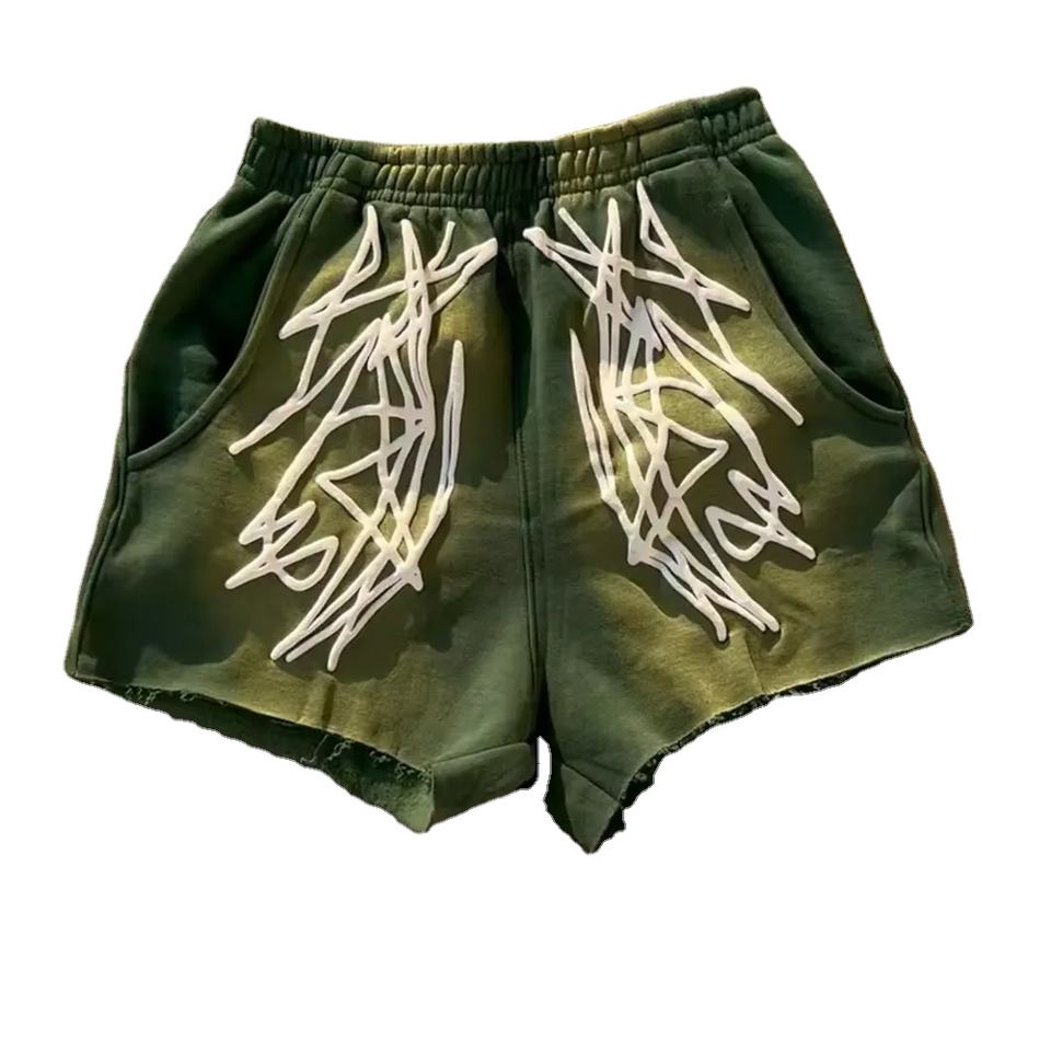 Unisex Wholesale French Terry Shorts 100% Cotton Sun-Faded Sweat Puff Print Acid Wash Quick Dry Raw-In Hem Design for Men