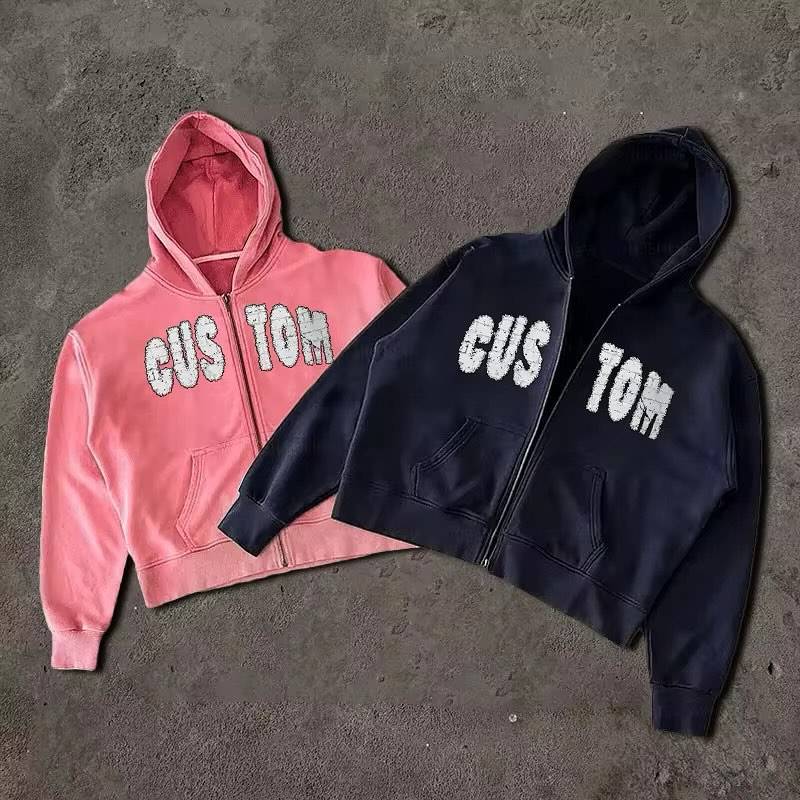 Sweat à capuche unisexe en molleton de coton pour l'hiver, délavé à l'acide, effet délavé, pour hommes et femmes, avec logo sérigraphié, broderie personnalisée