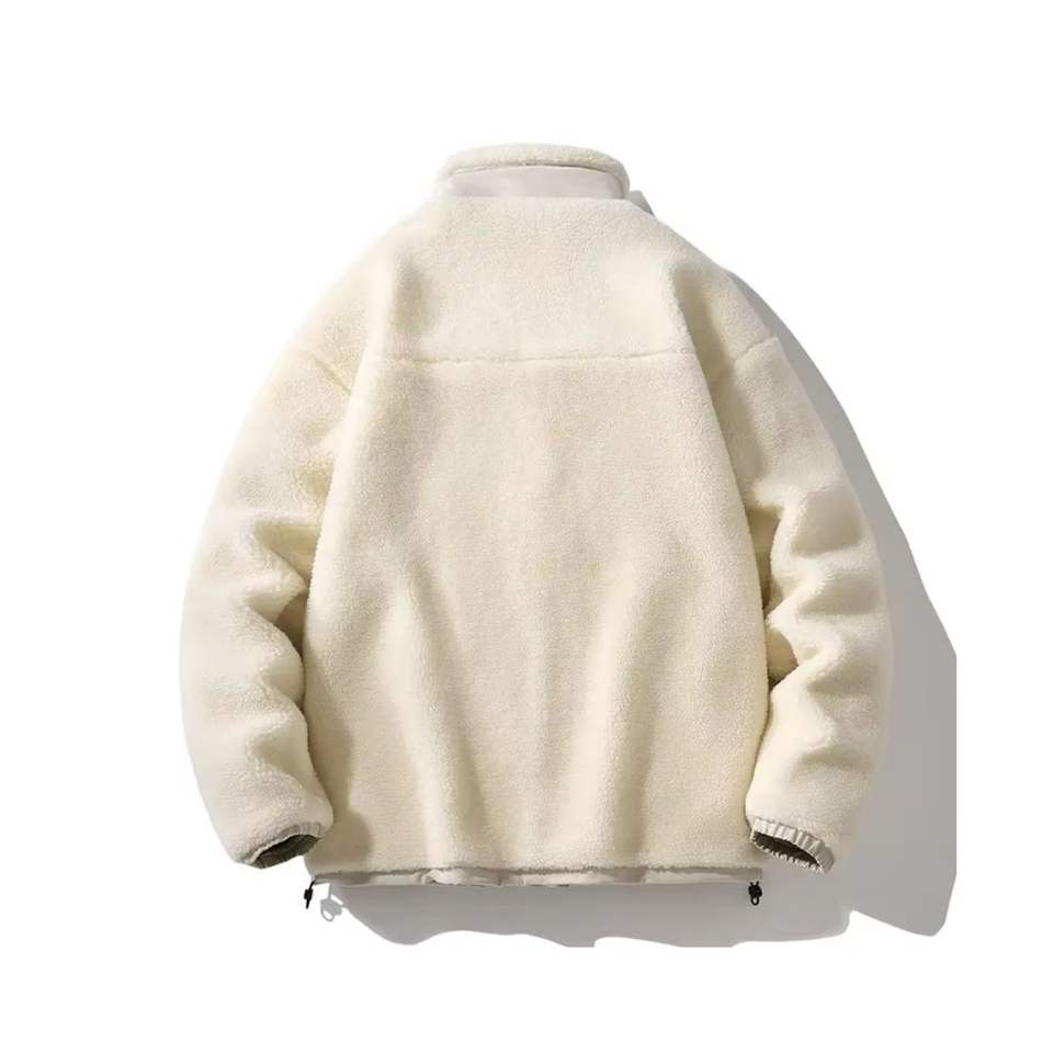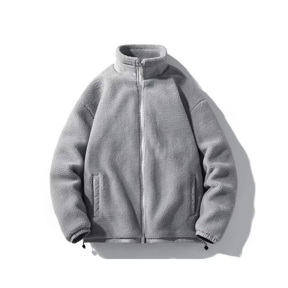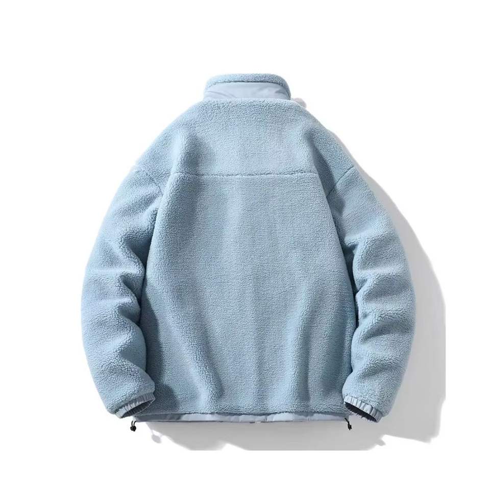 Veste polaire d'hiver unisexe avec un design unique Vêtements d'extérieur Sherpa chauds à manches longues et col montant pour hommes, teints en couleur unie