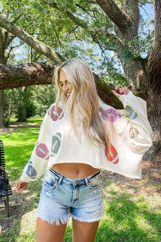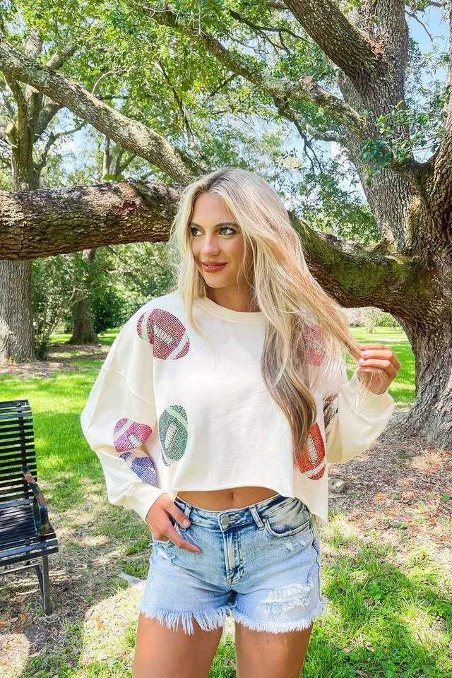 Sweat-shirt court unisexe en molleton avec strass, style football, pour les jours de match d'hiver, coupe oversize, décontracté, mode urbaine