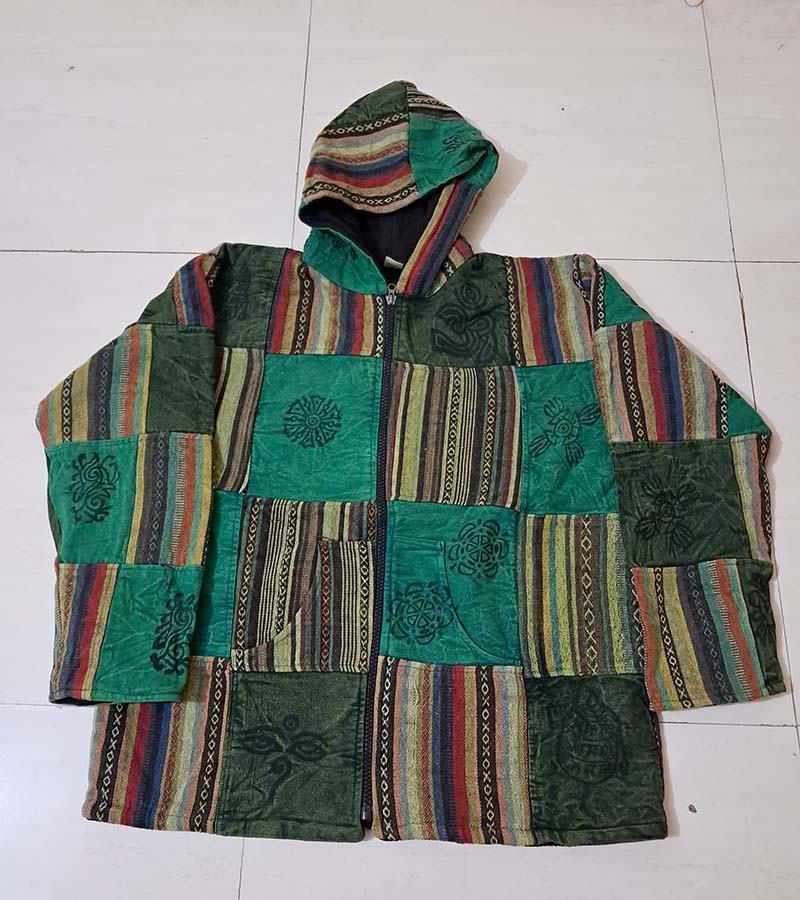 Veste d'hiver unisexe Hippie Veste patchwork avec intérieur Veste polaire Festival Eco Friendly Boho Sweat à capuche zippé GC-AP-1466