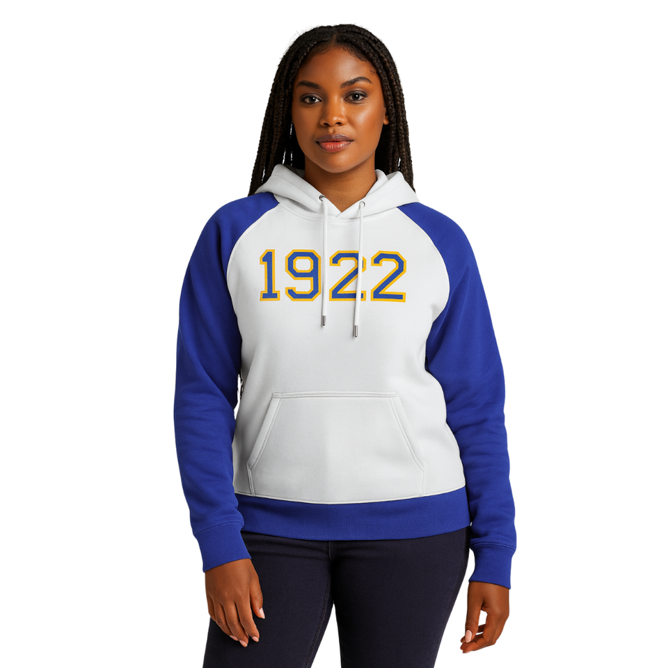 Unisex Winter Pullover Hoodie White Blue Color Block Fleece 100% Bamboo Fiber Number Print Front Pocket Rib Cuffs Casual Wear