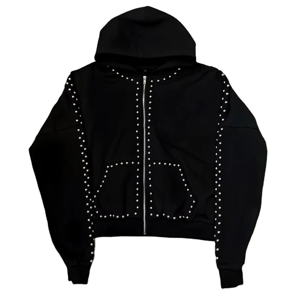 Unisex winter fleece rhinestone hoodie pullover with sparkly crystal artwork suitable for wholesale and shops