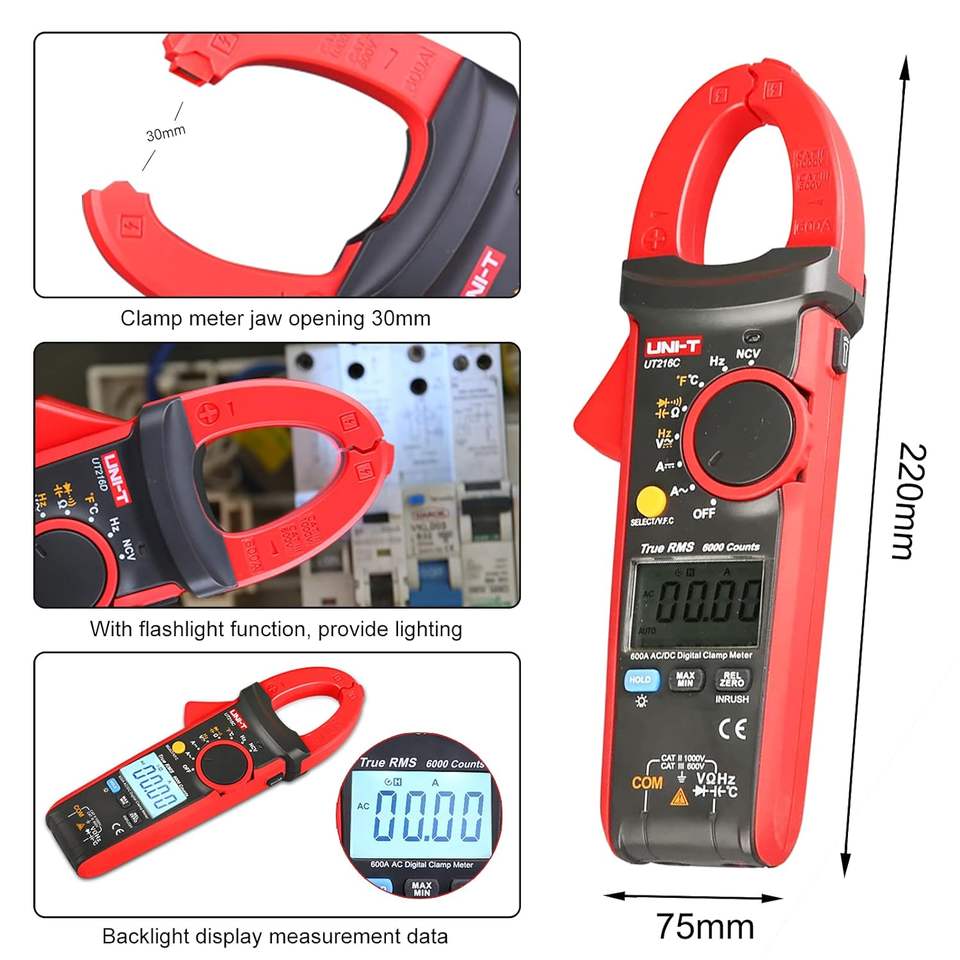 Multimètre à pince numérique Unit-T Ut216C 600A, testeur d'ohms, mesure automatique de la fréquence, de la capacité et de la température