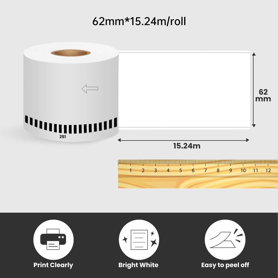 Unite Pack DK22251 avec support Compatible Brother DK-22251 DK2251 Étiquette en papier thermique continu noir et rouge sur blanc