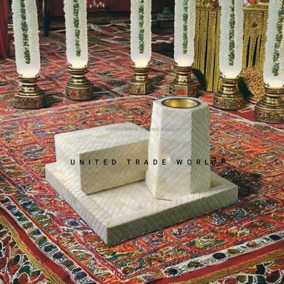 Plateau antique en MDF avec incrustations de os et rayures, en bois de santal aromatique, durable, pour encens indien, usage religieux et domestique, United Trade World