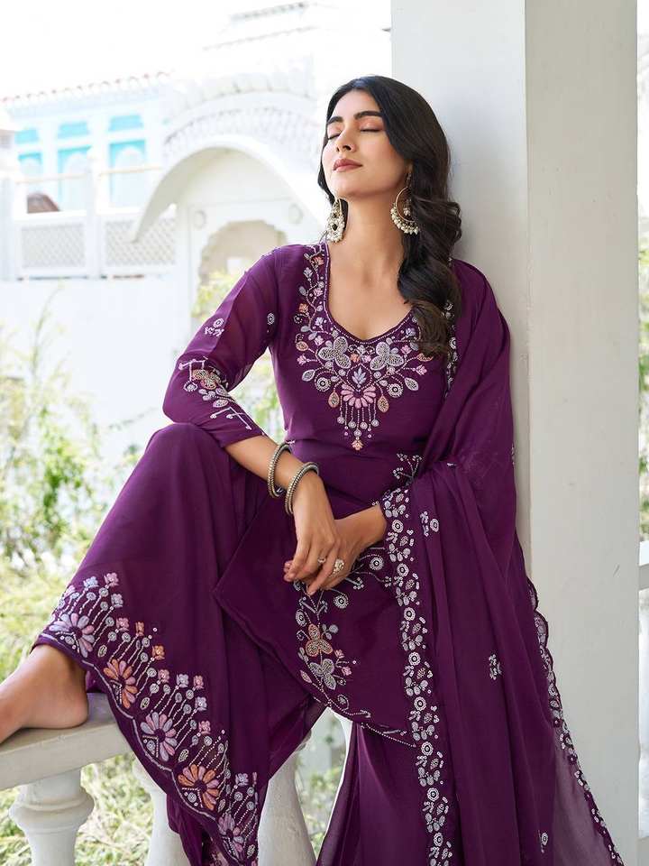 Ensemble Kurta Sharara de Luxe Brodé et Pailleté Respirant avec Dupatta en Tissu Georgette Doux – Tenue de Fête Élégante