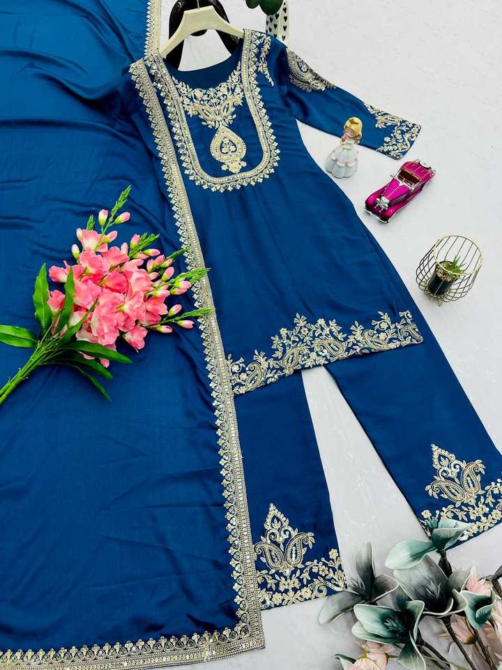 Ensemble de costume pakistanais de luxe en georgette brodée respirante, avec dupatta, pour occasions spéciales, tenue ethnique toutes saisons