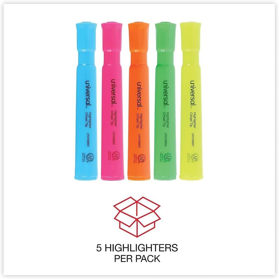 Ensemble de surligneurs universels 08860, couleurs fluorescentes, 5 pièces, pointe plate, pour l'école, surligneurs de bureau